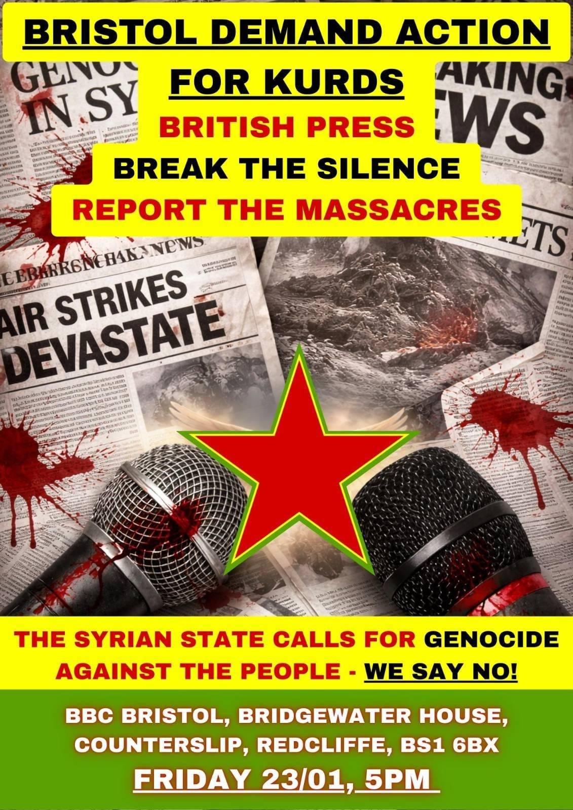 Hi friends. We need people to show up collectively this Friday at 5pm outside the BBC in solidarity with the Kurds.