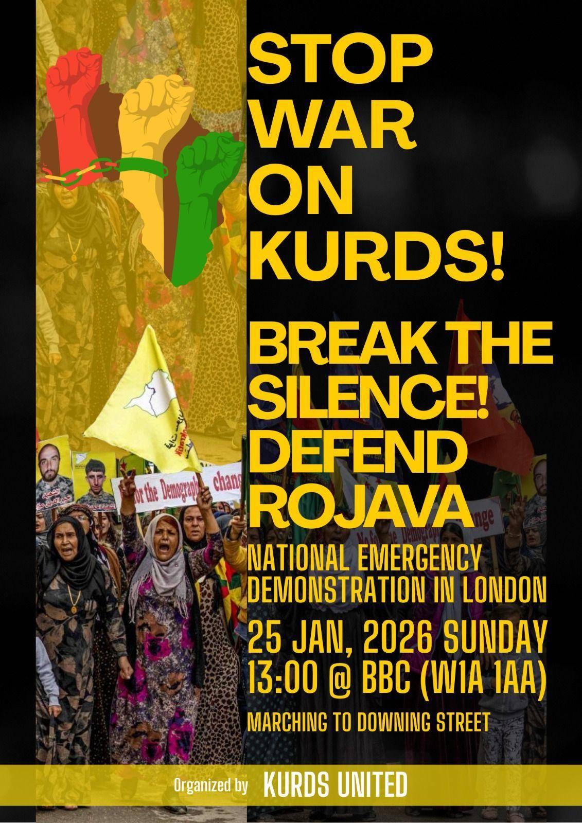 « All Events This event has passed. National Emergency Demo (London) January 25 @ 13:00 - 15:00 « The Resistance of Tishreen film screening and info-session (Leeds) Leeds: Protest for Kurds Rights & Freedom » Add to calendar Google Calendar iCalendar Outlook 365 Outlook Live Details Date: January 25 Time: 13:00 - 15:00 Event Categories: Defend Kurdistan, London Organiser Kurds United Venue BBC Portland Place London, W1A 1AA + Google Map