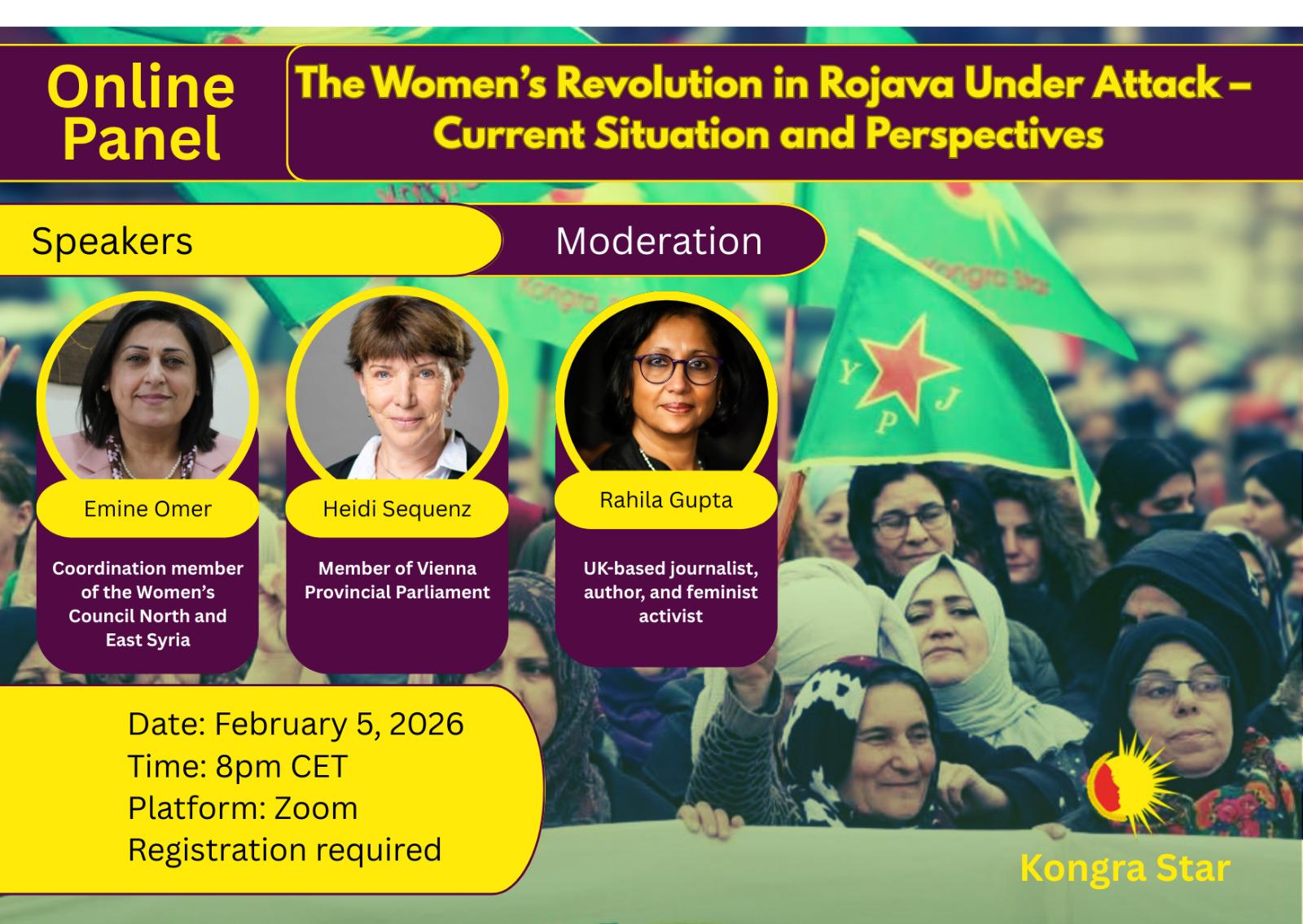 This online seminar will explore the current situation in Rojava, the political background of these attacks, and their concrete impact on women, society, and revolutionary structures. The discussion will focus on what recent developments mean for women’s rights, self-determination, and the future of the women’s revolution—and what role international solidarity can play during this critical moment.