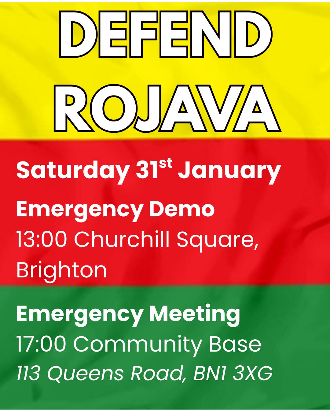 Dear Kurdish community members and comrades, Genocide attempts, displacement of hundreds of thousands of Kurdish people, and stealing of reservoir territories are happening. Democratic protest: Wednesday / Çarşamba 12:00 Churchill Square Western Road Brighton BN1 2TE, UK Dem u Beyanî baş, Gelêmeyî bi rumet, Wekî ahahîya we pê heye êrîşên li ser civakameyî Rojava kom […] |