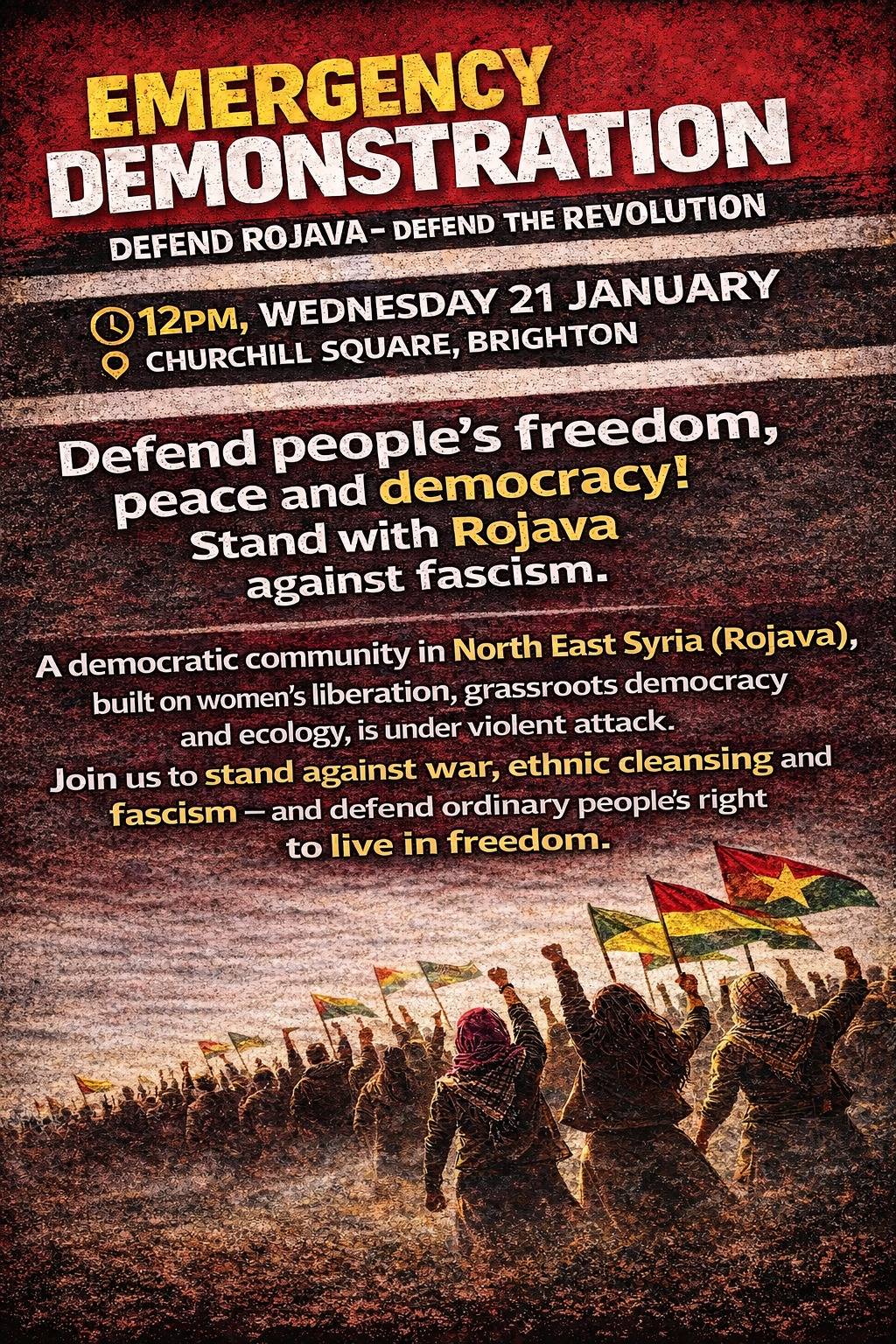 Churchill Square Churchill Square, Western Rd, Brighton, United KingdomDear Kurdish community members and comrades, Genocide attempts, displacement of hundreds of thousands of Kurdish people, and stealing of reservoir territories are happening. Democratic protest: Wednesday / Çarşamba 12:00 Churchill Square Western Road Brighton BN1 2TE, UK Dem u Beyanî baş, Gelêmeyî bi rumet, Wekî ahahîya we pê heye êrîşên li ser civakameyî Rojava kom […]